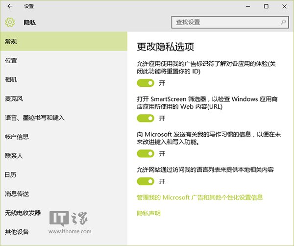 虽然微软表示将保护用户隐私,但Win10的诸多新功能也难逃用户质疑。比如Cortana数字助手,这项功能的确比较方便,你的语音语调、家庭住址、搜索内容、个人爱好、工作安排、约会时间地点、“朋友圈”(联系人信息)等内容都会记录在案,并且上传到微软服务器。可以说你的一切尽在Cortana掌握之中,这也是国外用户流行使用Win10隐私屏蔽第三方工具的重要原因。虽然这些功能全部关闭后,Win10貌似没有以前好用,但大家就是用着放心。也许大家并非不信任微软,但如果这些资料落到不法之徒手中,那后果就不堪设想了。防人之心不可无。