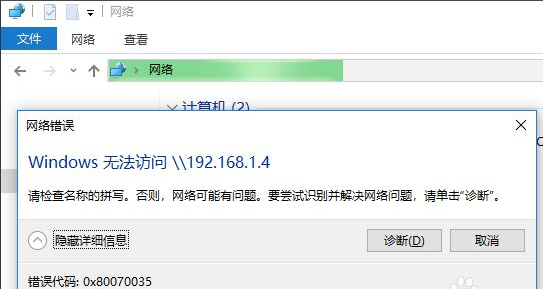 0x80070035无法访问共享