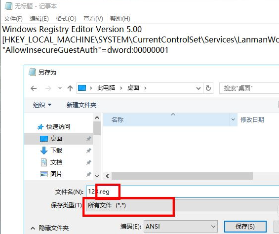 然后保存,修改后缀名为“.reg”;