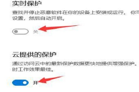 3、进入病毒防护界面后可以直接查看病毒防护设置,不需要点击别的,只要把“实时保护”和“云提供的保护”都关闭就可以了;