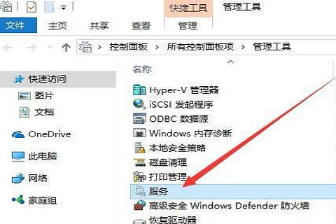 4、接下来在打开的管理工具列表中点击“服务”的图标;