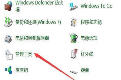 3、这时会打开所有控制面板项窗口点击“管理工具”的图标;
