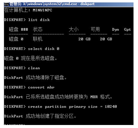 7、输入:create partition primary size = xxx,回车。创建主分区大小(MB)。