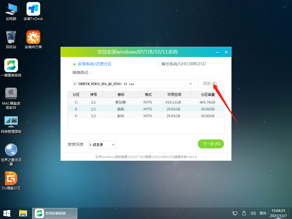 3、打开工具后,点击浏览选择U盘中的下载好的系统镜像ISO。