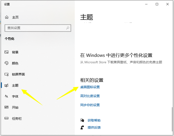 2、在个性化界面中选择左侧的“主题”,然后点击右侧的“桌面图标设置”打开。