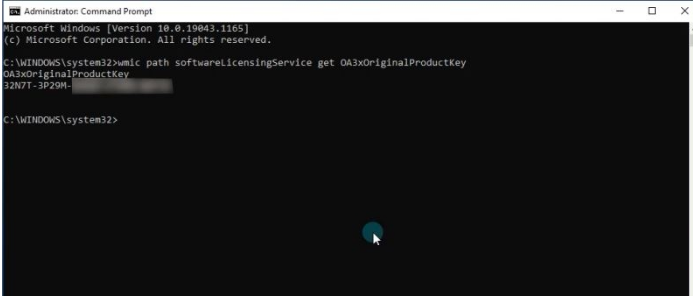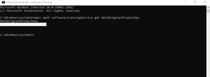 2、现在输入或粘贴以下命令行并按下Enter以运行它:wmic path softwareLicensingService get OA3xOriginalProductKey。