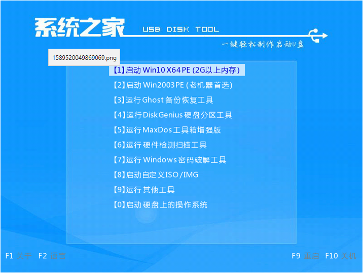 (1)开机之后快速地按F12,ESC等启动键从U盘启动并进入PE系统菜单的1选项回车进入。