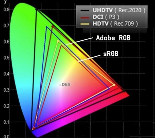此外,显示器和电视所遵循的色彩标准也不相同,当前显示器所使用的色彩标准为sRGB,而电视使用的则是Rec.709标准或是少数DCI-P3标准。