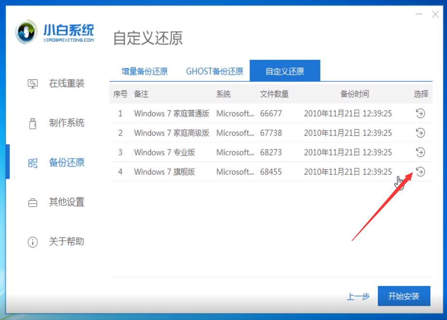 2、检测完成后进入主界面点击备份还原,选择自定义还原