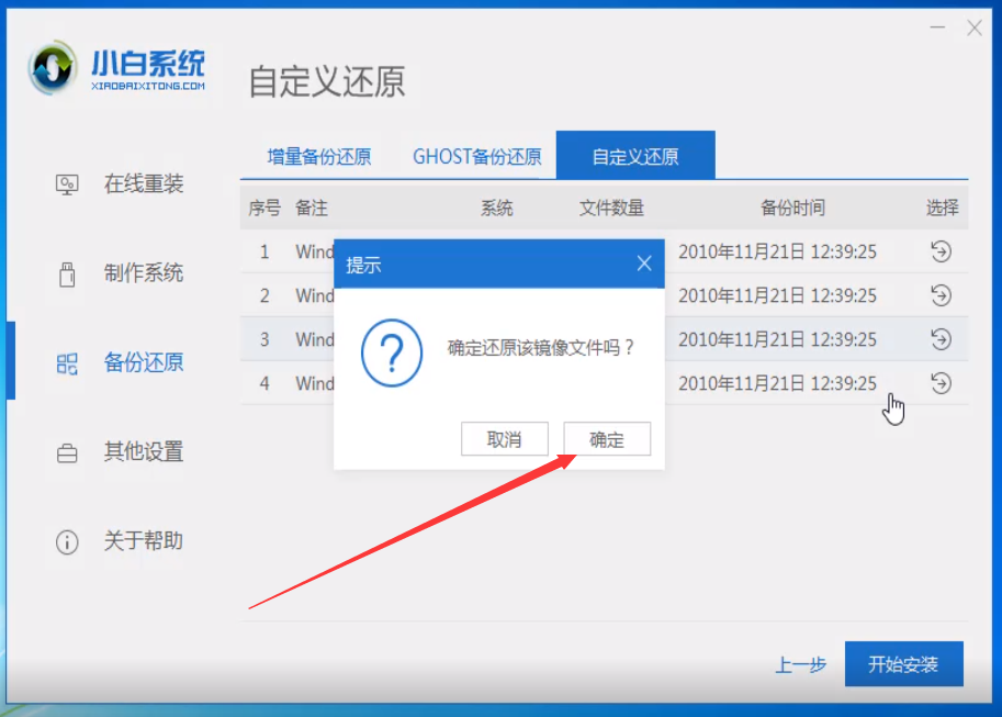6、出现提示还原该镜像文件的窗口,点击确定。之后小白就会开始自动下载PE系统文件安装系统啦