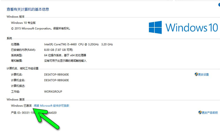 激活之后就是上图那样显示windows已激活。