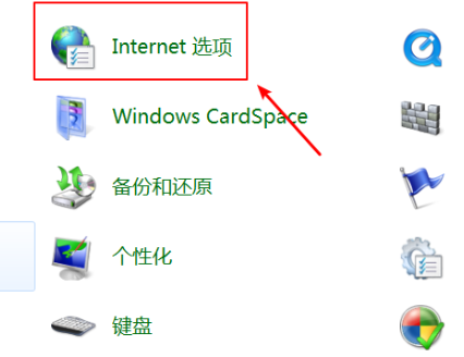 2、接着打开控制面板,找到internet选项,并点击打开。