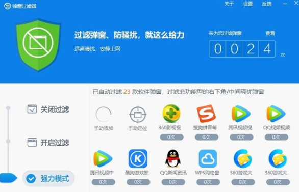 2、在页面中开启弹窗过滤功能即可。