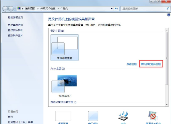 2、会弹出一个页面,点击联机获取更多主题,如图所示: