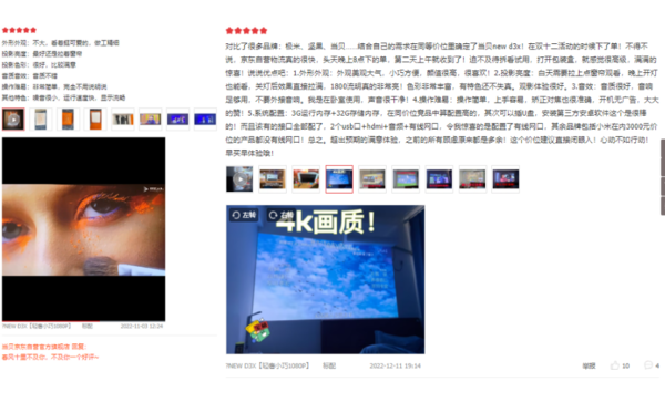 除了看投影仪的隐藏参数,一些隐藏参数“质量”也是十分重要,除非用户入手之后使用一段时间才能体会到投影仪质量,那时候对于用户来讲也为时已晚。我是建议大家选购前先看看评论区里的评论,尤其是中、差评区,涉及产品质量的评论尤为关键。排除非产品等因素的评论,就可以很快分辨出这款产品到底有哪些问题。如果是新上线的投影仪,我建议除非特别喜欢或急需入手,大家可以持币观望一阵子,看看风评如何,再做购买决定。