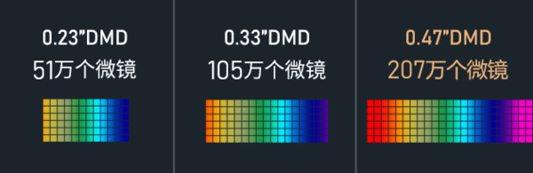投影仪采用的芯片尺寸大小决定了分辨率的高低,常用的显示芯片尺寸分为:0.23DMD、0、33DMD;0.47DMD。目前绝大多数的投影仪分辨率都为1080P,低于这个分辨率的就不建议购买了。