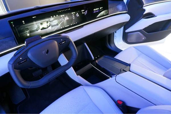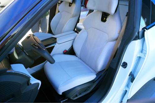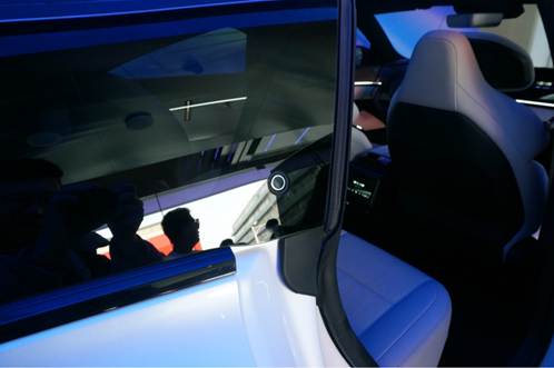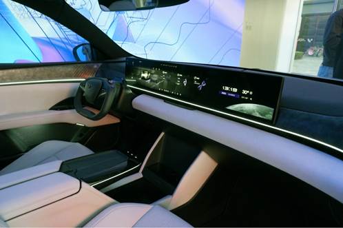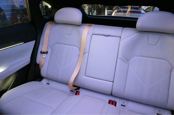 进入到车内,个人觉得这个车厢空间是非常具有科幻感的,据说内饰的设计灵感来自科幻宇宙飞船的座舱概念。给人的第一感觉就是实体按键非常的少,就连换挡杆都取消了,被集成在了扶手上通过按键的形式操作。