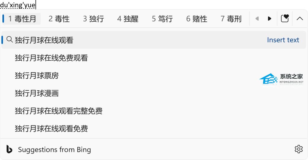 简体中文 IME 候选窗口,Bing 的单词建议排在第二位。