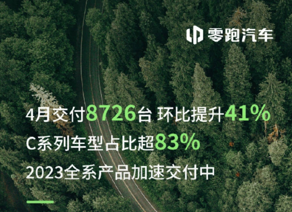 【本站】5月1日消息,国内新能源汽车品牌零跑汽车在最新公布的交付数据中显示,零跑汽车在2023年4月份向消费者交付了8726辆汽车,较3月份提升了41%。C系列车型成为了推动零跑汽车交付数据增长的主力,占比超过了83%。据零跑官方透露,其2023年全系产品正在加速交付中,预计5月的表现会更加强劲。