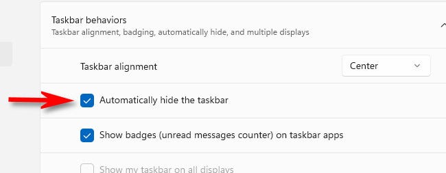 选中该框后,任务栏将消失。但是,如果您仔细观察,您仍会在屏幕底部看到一条小线,让您知道它已准备好随时弹出。