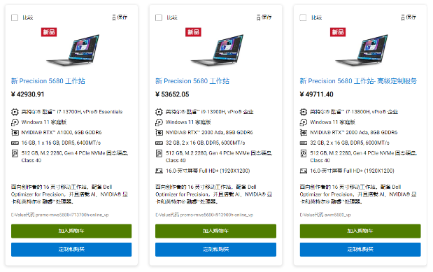 戴尔Precision 5480的起售价为39349.06元,而Precision 5680的起售价为42930.91元。用户可以在戴尔官网上了解更多关于配置和购买信息。