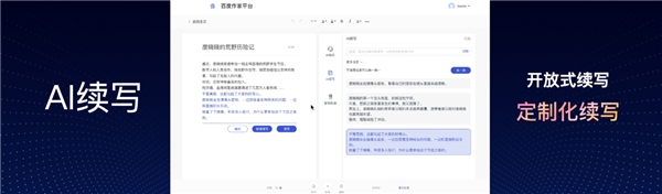 每一位小说创作者都不可避免的会遇到卡文、灵感枯竭等情况。此时,创作者可以使用AI续写功能。只需在百度作家后台先简单设定故事场景,AI就能根据前文提供3个不同情节的开放式续写思路,并能根据需求无限次生成续写内容;当然,如果创作者本身已有完整的思路,只是在写法、笔法上出现卡顿,则只需输入一段指令,AI就能根据指令内容生成对应的续写情节,满足作者的定制化需求。
