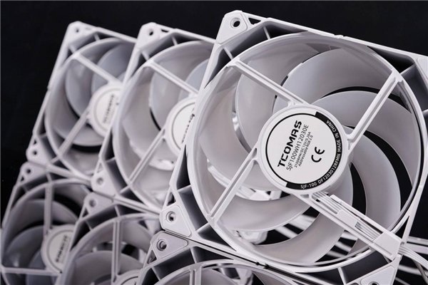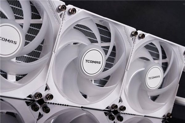TCOMAS SJA100E 一体式360水冷散热器配备的三颗风扇也大有讲究。风扇外框采用斜纹加TCOMAS英文标识咬花设计,外观质感满满;内框采用无限环绕设计,形成强劲风压,更利于通风散热与噪音减弱。风压风量增大的同时,转速达到2100 RPM±10%,高于市场大多数的1850 R.P.M±10%,为机箱、散热器、水冷排提供更强劲的散热能力。风扇噪音低至30db,真正做到“静若无声“。