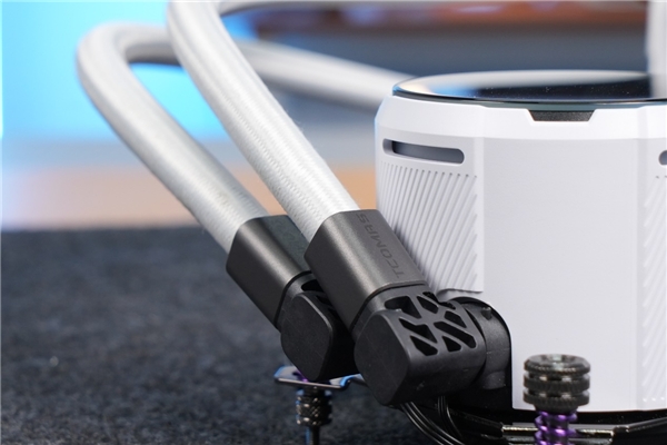 考虑到因硬件性能影响而日益增大的电脑机箱,水管采用了直径为12.5mm,长度为400mm的EPDM管来匹配更多机型使用。液流更顺畅,更少流阻的冷却液将热量迅速传递。整体尺寸使整机视觉感受更加饱满和协调,编织网设计更是让水管耐用且美观,做到真正细心地为用户考虑。