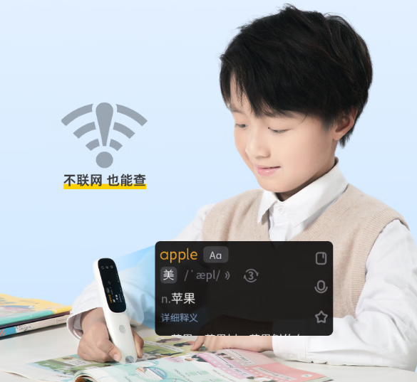 阿尔法蛋AI词典笔D1将《牛津高阶英汉双解词典(第9版)》、《现代汉语规范词典》、《古代汉语词典》等20多本工具书、权威词典装进一支笔,涵盖800万+中英词汇,覆盖小学中学阶段需要查询的内容,孩子预习过程中遇到的陌生知识点,用它扫一扫,可以即刻得到解答,预习效率更高、知识解答更权威。