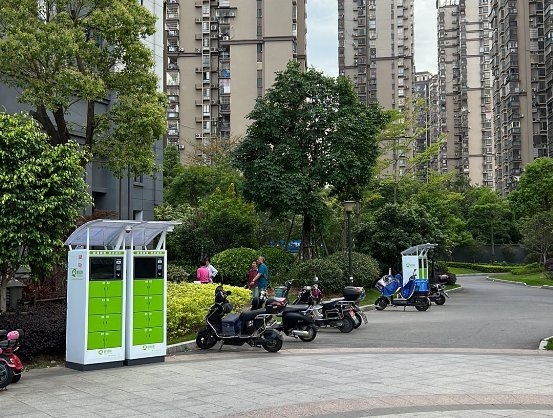 区别于传统电瓶充电模式,换电模式将充电步骤从用户端转移至换电柜中。通过标准化统一的电池、换电站以及车辆,保障用户出行安全。一方面,比起将车辆横七竖八的挤在小区充电棚内集中充电,或是用“飞线”充电等危险方式充电,换电模式大大降低了用户在充电过程中引发危险的概率。另一方面,电池统一在“榕易换”换电柜中进行充电,能够在防止过充的同时实时监测电池数据,延长电池使用寿命。