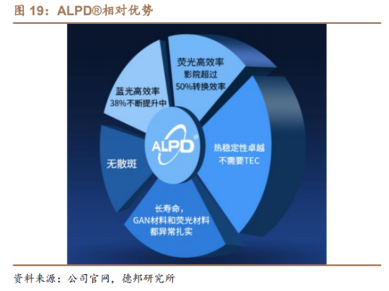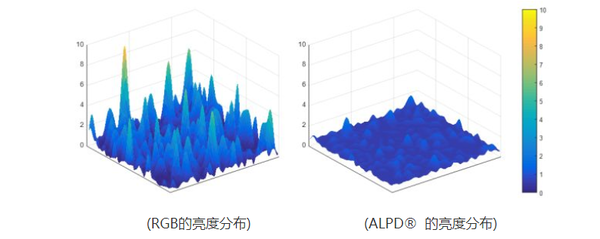 ALPD激光采用的是激光激发荧光的技术,使用荧光混合多色激光的技术路线,将激光的小光学扩展量、广色域等特色与荧光的高效率、无散斑特点结合;由于荧光材料是由掺杂离子在在自发发光,并且都是朝着整个空间的各个方向,所以在时间和空间上都没有相干性,从技术源头上这种技术不会产生散斑现象,现在很多电影院的影厅也是采用的ALPD激光放映技术。