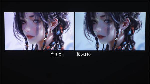 单个的画面并不能展现它的优势,当贝X5和同价位投影相比更能展现出优势所在,从下面的对比图中饭可以看得出当贝X5不仅画面亮度更好,色彩饱和度也更好,这种优质画面更适合放在客厅使用。