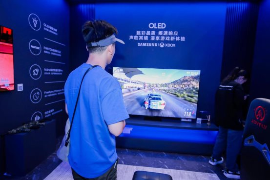 三星在本次巡展现场为游戏发烧友们搭建起家庭电竞房,在该展区内,三星OLED电视以逼真视效还原游戏世界。三星OLED电视通过神经元量子点处理器的感知色彩映射技术,可精准呈现不同层次的明暗颜色,是全球首款获得 Pantone(潘通)色彩认证的 OLED 电视。其色彩表现力能够针对RPG游戏、FPS游戏、RTS游戏与体育游戏多种游戏类型进行定向画质优化,以确保为玩家提供绝佳的游戏环境。三星OLED电视将角色扮演游戏《光环:无限》的画面细节生动呈现,让现场玩家沉浸式体验了游戏主人公的精彩人生。现场玩家还上手体验了Xbox有史以来最火爆的游戏之一《极限竞速:地平线5》。三星OLED电视144Hz高刷新率与行业内超低输入延迟能够助力玩家在重视速度的游戏中抢占先机,还通过动态黑色均衡器、游戏动态增强plus等多种技术优势,使用户在玩HDR游戏时也不会出现画面撕裂或晃动的情况,配合杜比全景声环绕,以流畅之姿驰骋竞技疆场。