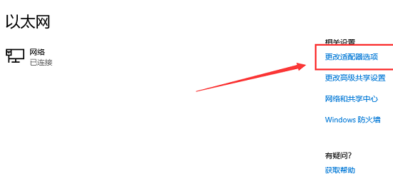 4. 之后可以打开网络中心,在以太网的相关配置中,点击更改适配器选项。