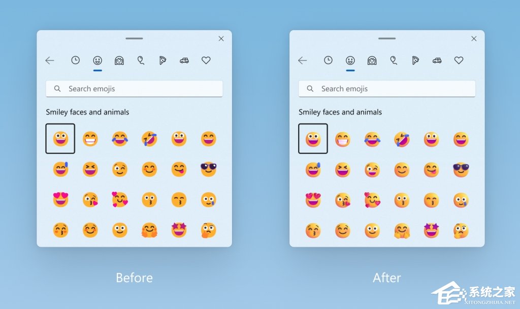 更新表情符号颜色格式之前和之后。