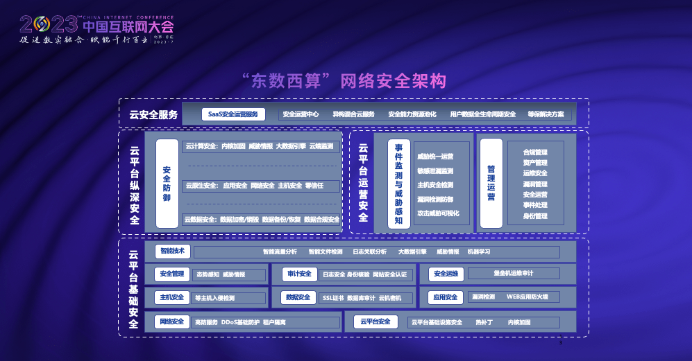 刘杰认为,安全是一个整体,具有非常典型的“木桶效应”,数据安全离不开完备对网络安全体系。优刻得构建并持续优化“东数西算”应用框架下的网络安全架构,通过云平台基础安全、云平台纵深安全、云平台运营安全等,将安全能力资源池化,为用户提供异构混合云安全服务。