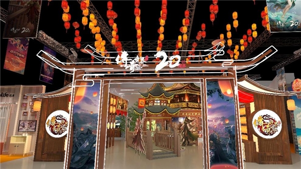 从《传奇世界》20周年主题展区的整体设计来看,它既保留了东方美学的传统神韵,又加以简化创新,在继承古典风格的基础上融入现代的彩灯描绘,呈现出一步一景,充满意趣的游园氛围。无论是上方悬挂的彩色灯笼,还是下方搭建的豫园湖心亭、九曲桥等古色古香的建筑,都能让人感受到中国传统民俗文化中特有的味道,既喜庆,又热闹。