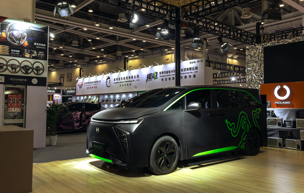 如今,电子竞技作为一种新兴的文化形态,正以暴风之势席卷而来,并渗透到汽车改装领域。本届展会现场涌现出多款以电竞为主题的改装车型,而其中,最令人印象深刻的,莫过于合创V09 RAZER。