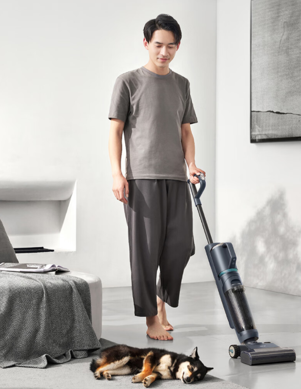 首先,米博的无滚布洗地机不同处之一,就是其原创的“水气旋洗吸一体技术”,该技术助力米博成功开创“无滚布”清洁方式,帮助米博成功占据行业发展高地。这项技术突破传统“布洗”地面的清洁方式,采用极具革新性的“水洗”地面方式,通过每分钟7.3万转的高速电机旋转,将空气和水混合形成14m/s的高速混合流体,每颗水滴都具有18.8g的强大地面冲击力;再结合11000Pa的超大吸力,配合水气旋地刷每分钟3000次的高速对地摩擦,形成强劲清洁力,高效去污,并在0.034秒内快速完成废水回收,地刷速干清爽无残留。“洗”和“吸”的同步进行,让污渍“无所遁形”!