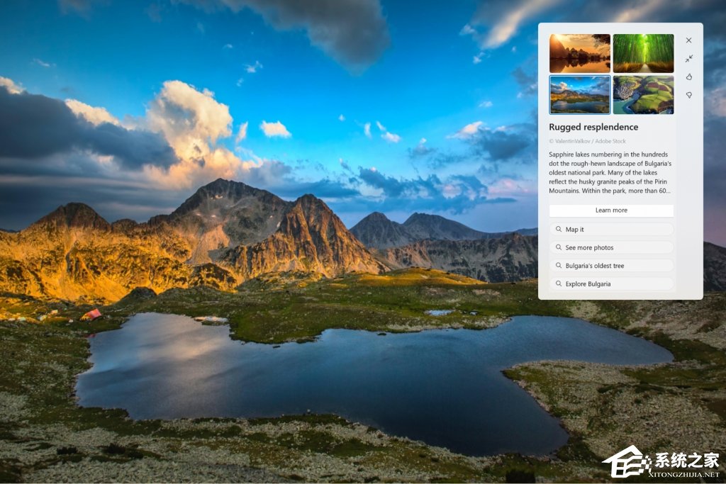 Windows Spotlight 的多种处理方式之一,可在全屏体验中显示更丰富的 UI。无论如何单击桌面都会取消全屏体验。
