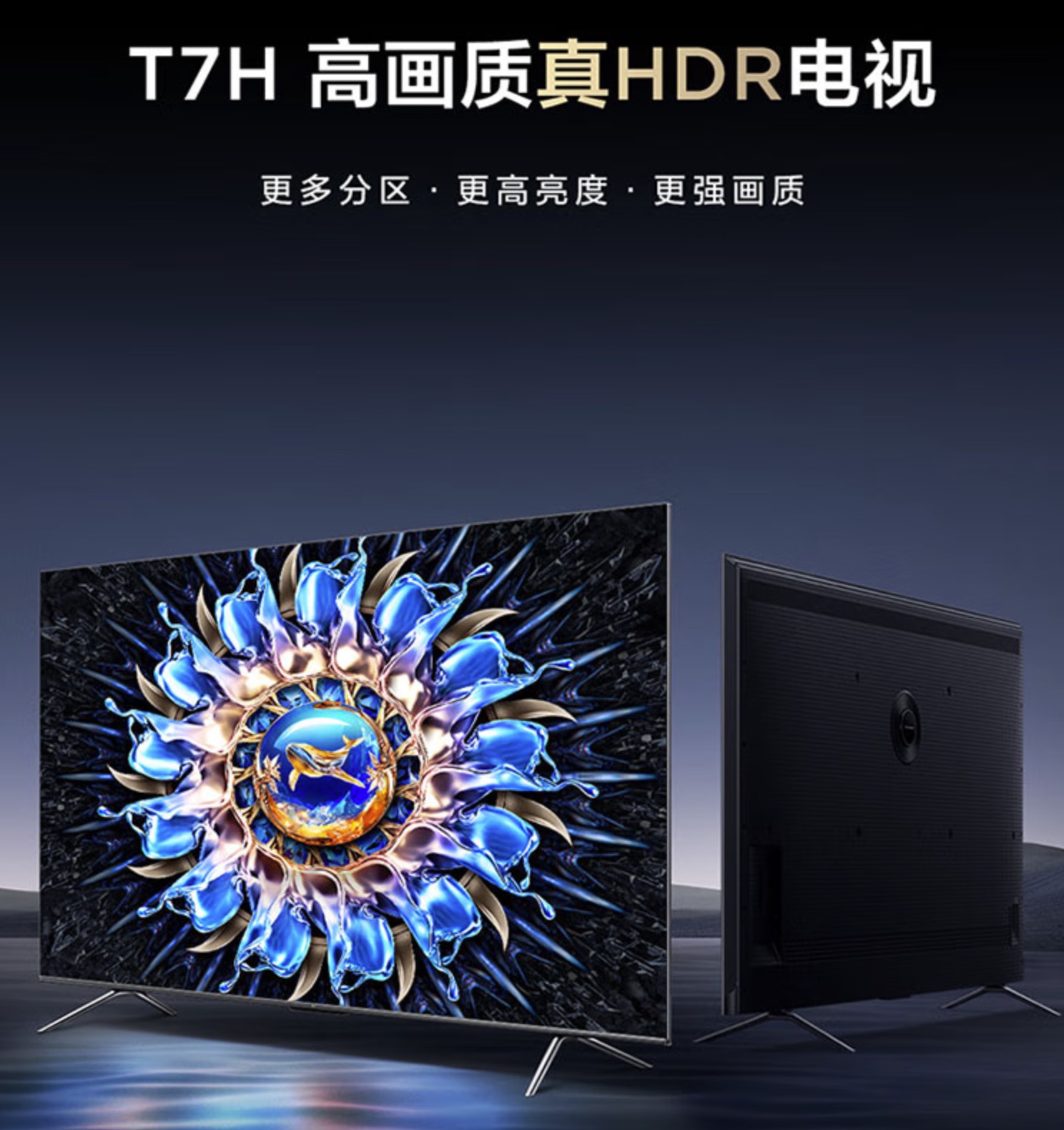 按照这个选购真HDR电视的标准搜索,我发现TCL的 T7H很符合我的要求,最高拥有1300nits的峰值亮度,相比于HDR电视的1000nits的及格线还是要高上不少的,这样在显示一些高亮画面的时候,能更好的表现出画面的明暗细节了。