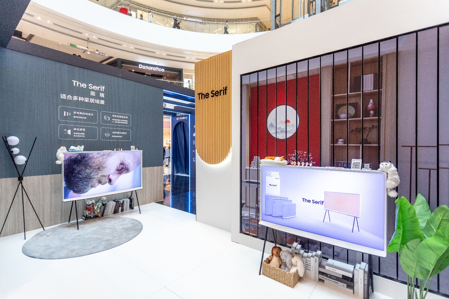无惧时间,串联空间,方为画境。在“百变艺术空间”,通过展现The Serif画境系列艺术电视与年轻家庭、中式风格以及环保主题3种家居格调的搭配,消费者切身感受到了这款电视随心百变、潮流时尚的产品特性。新颖的“I”形边框使电视在充当置物架的同时与室内空间进行有效互动,赋予空间独特的灵感。云白色彩的使用更是为电视增添了符合当下潮流的时尚之美,以及经得住多角度欣赏的细节之美。