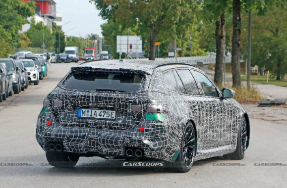 从最新曝光的路测照片中可以看出,M5 Touring 在外观方面采用了宝马家族最新的设计语言,前脸配备了具有侵略性的前保险杠和宽大的格栅进气口,使整车线条更加硬朗。而侧面设计则采用了流线型车身,配有齐平安装的门把手,车顶向后倾斜并配备行李架组件,兼顾了运动感和实用性。时尚的轮毂和高性能轮胎更是彰显了其跑车的身份。