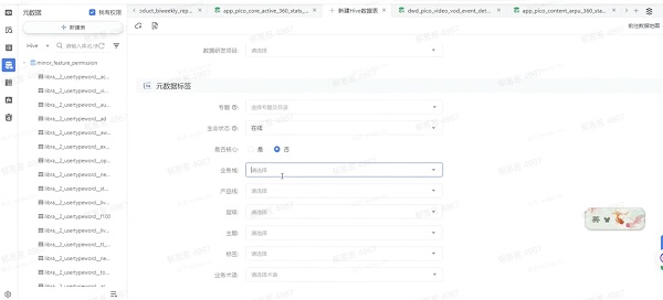 在数仓建表规范中,首先PICO数据团队可通过火山引擎DataLeap的表格管理功能做到快速建表,帮助使用者识别每个字段,及它对应的字段类型,大幅度提升了开发工作效率;同时,完成建表后,可以通过DataLeap再进一步筛选元数据标签,获取如业务域、产品线、层级、主题等相关信息;最终,正式上线前,相关的管理人员会进行交叉review,保证数据使用安全。