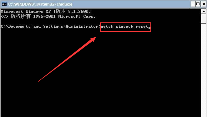2、在打开的命令符窗口中输入netsh winsock reset并按下回车键。