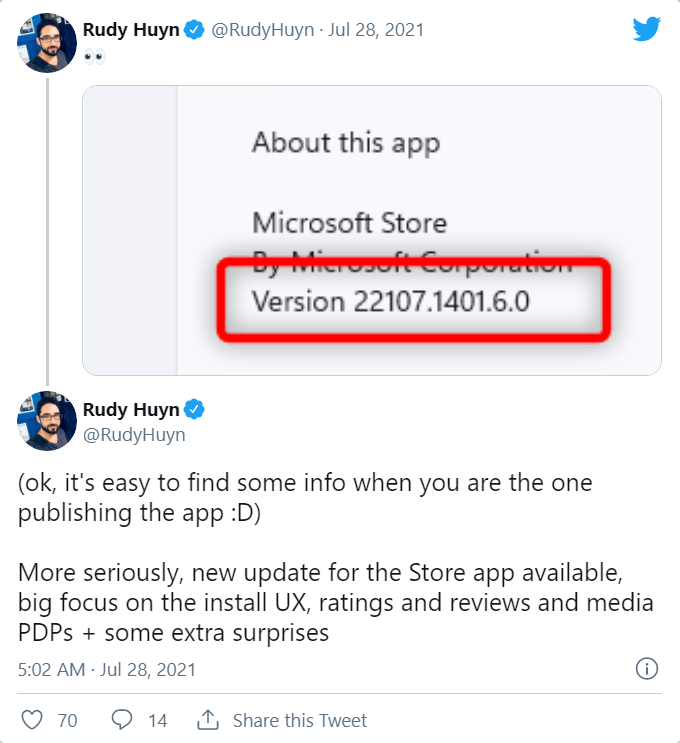 Huyn 在后续推文中澄清,微软商店的资料库部分也随着更新得到了改善。