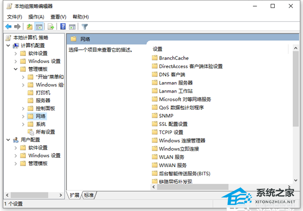 2. 依次点击打开“计算机配置”,“管理模板”,“网络”。