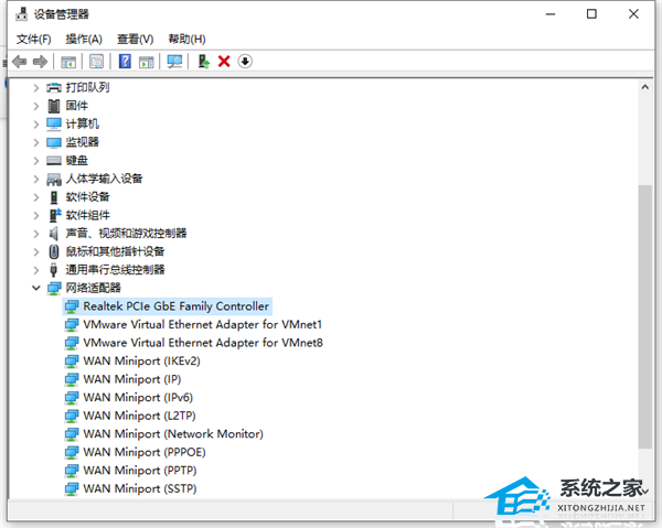 2. 进入页面后,在页面中找到“网络适配器”选项,双击该选项,然后点选“Realtek PCIe GBE Family Controller“选项。