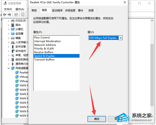 4. 需要将它设置为“100Mbps全双工”,点击右下角的“确定”按钮就完成了,然后电脑的网速就会得到很大的提升。
