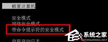 1. 重启电脑,重启后马上按下F8弹出选项,选择“带命令提示符的安全模式”进入。